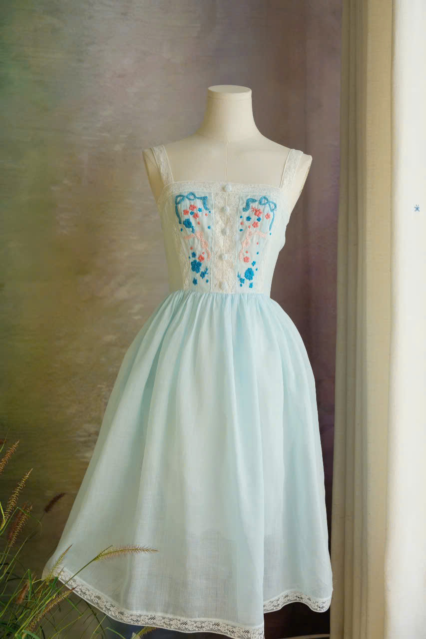 Bluebell Reverie – Linen Embroidered Summer Dress